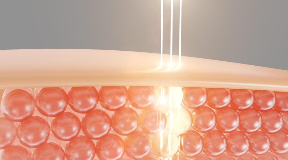 미세한 바늘을 통해 피부에 침투하여 고주파(RF) 에너지와 프락셔널 레이저를 동시에 조사하는 장비