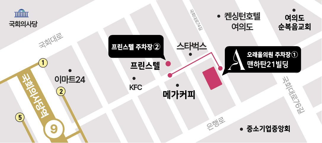 켄싱턴호텔.여의도 (국회의사당 방면, 도보 300m)